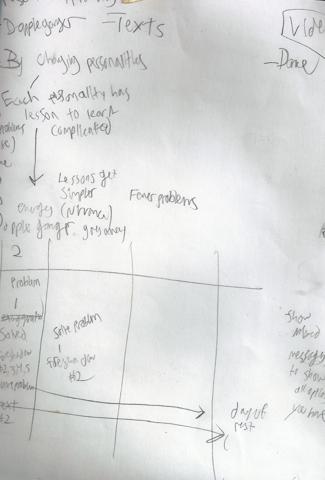 We spent most of the time plotting out the story. We agreed that the story should have a format to it, in order to emphasize how the girl's problems were slowly being solved. It would also help establish when dream sequences would appear. Kaitlyn choreographed simple dances so non-Dancers like me could even do them.